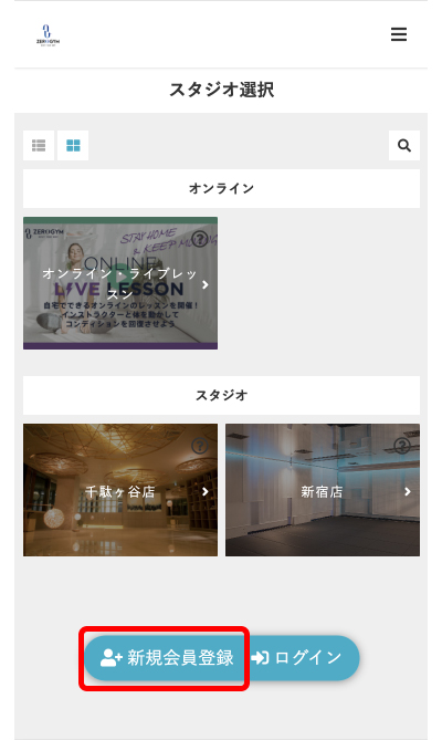 1.「新規会員登録」を選択してください。