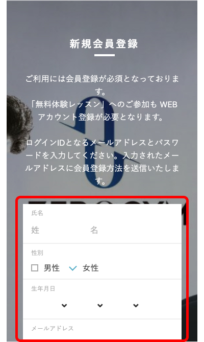 2.お名前、メールアドレス、ログイン用パスワードを設定ください。