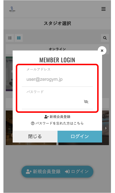 ID:ZEROGYMの会員情報にご登録のメールアドレス