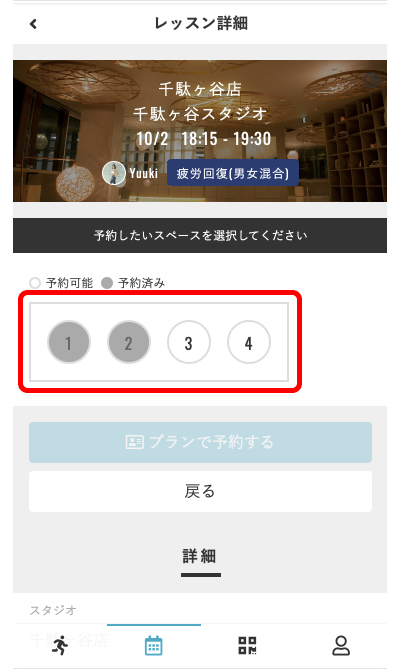 4.空いている枠を選択(白塗りの枠が空き枠です)